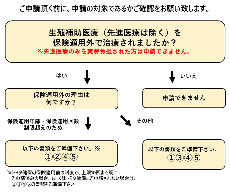他団体の特定不妊助成金制度も申請する場合は各助成金を受け取った後にトヨタ自動車労働組合に申請となります。